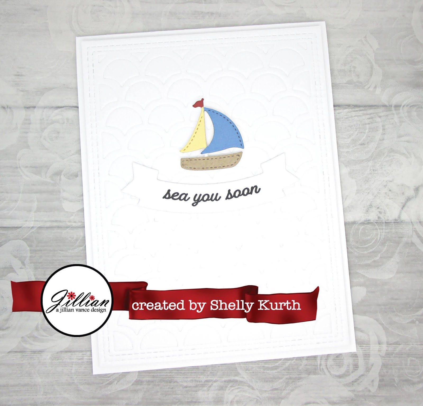 Next, I used the sailboat die for making the sailboat and just used it with different colored cardstocks. After, I did some trimming with scissors to make the sails, flag, and boat. Then glued all the pieces where I wanted them. Once done, I added some foam tape on the back and then added it to my card. Lastly, I added a sentiment onto a banner from the eggstra special create a card die set and then added it to my card. Fun, yeah?!...