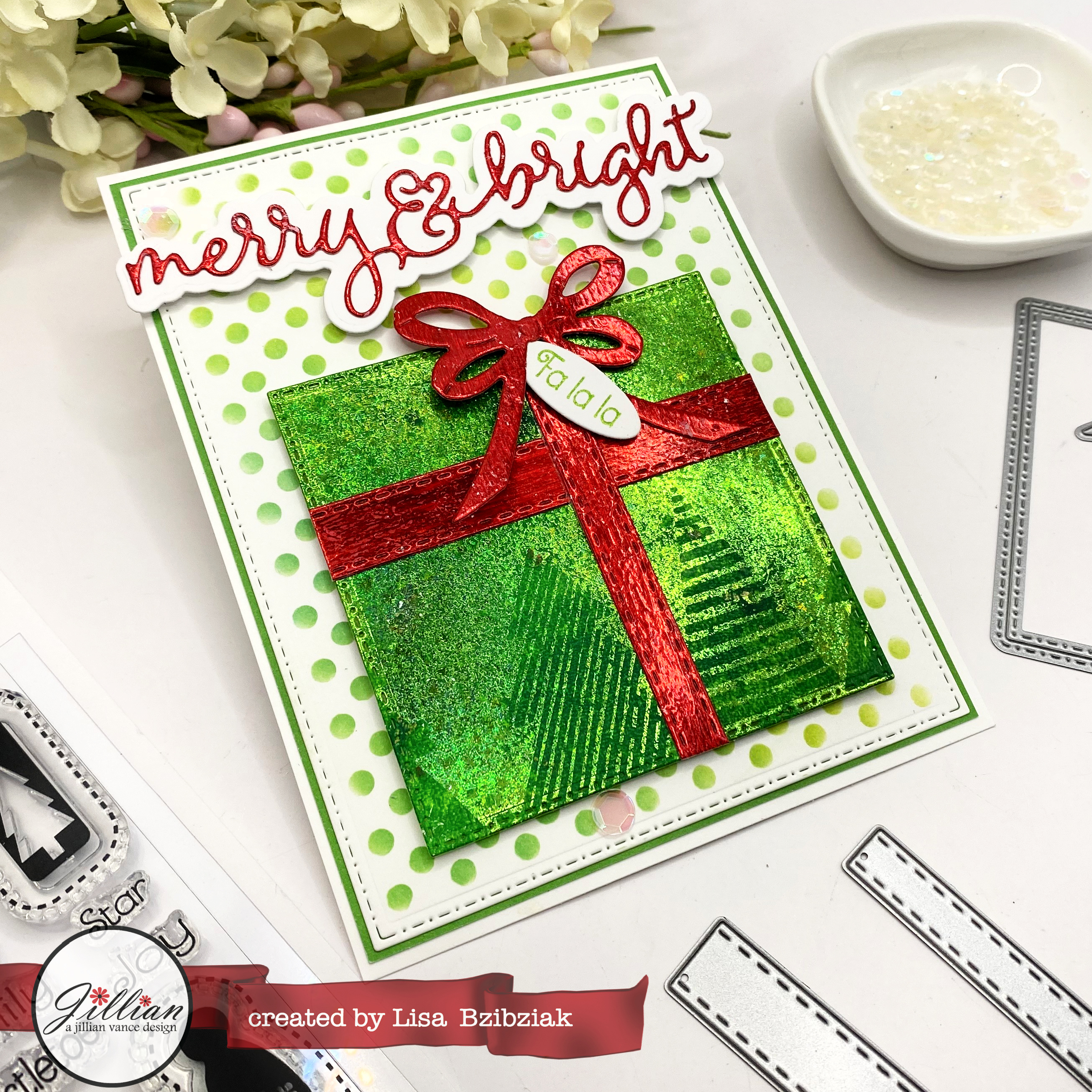 Happy Monday! I've got a gift for you! I created this present using square dies and sentiment strips and a the bow from the Merry Mistletoe die set. I popped it up onto the Polka Dot background.
